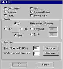 为得到最佳的矢量化效果,Vpstudio提供了完善的光栅编辑工具,可以完成光栅图的剪切(Cut Window)、切除(Crop)、倾斜校正(Deskew)、反转(Invert)、旋转(Rotate Quadrantal、Rotate Arbitrary)、镜像(Horizontal Mirror、Vertical Mirror)、去污(Remove Speckles)等操作,还可以对光栅图进行分割(Split File)、拼接(Merge)、缩放(Scale Drawing)。