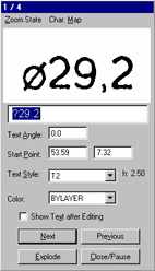 执行Entities\Review Texts,识别图中的文字。对于某些难以辨认的文字,可通过Entities\Combine to\Text来进行组合识别。同样,Entities\Combine to\Line、Entities\Combine to\Circle、Entities\Combine to\Arc可分别将选定的对象组合成直线、圆、弧,如不满意,可双击对象,对其所在层、位置、大小、线型、颜色等属性进行改变。