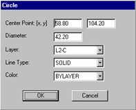 对于一些小型应用,可以不需要AutoCAD系统,使用集成的CAD工具箱就能完成必要的绘图、编辑工作。从简单的点、线、弧、圆、文本到复杂的阴影线、尺寸标注、块的绘制,CAD工具箱均能胜任,并且提供了多种方法。仅以圆为例,就可使用半径、直径、三点共三种绘图方式。还可进行炸开(Explode)、分断(Cut)、修剪(Trim)、延伸(Make)等操作。