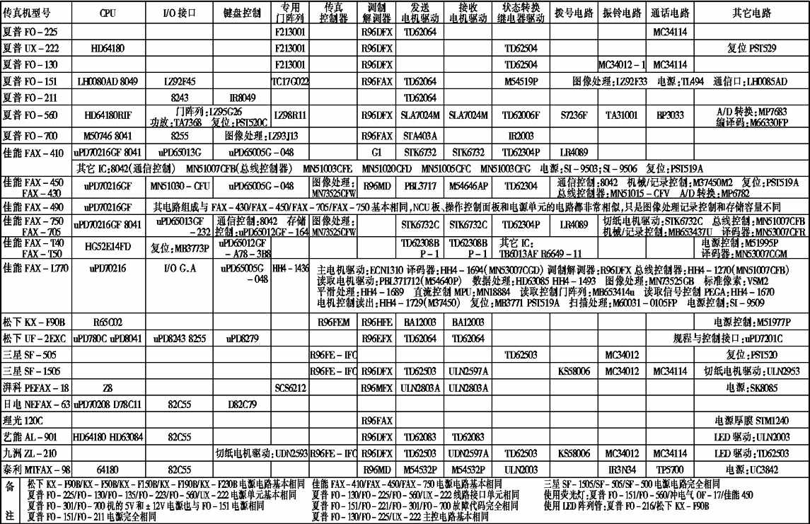 常见传真机配用集成电路一览表