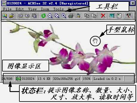 直接双击关联的图像文件图标,ACDSee32就以“VIEWER”查看界面打开文件显示图像。