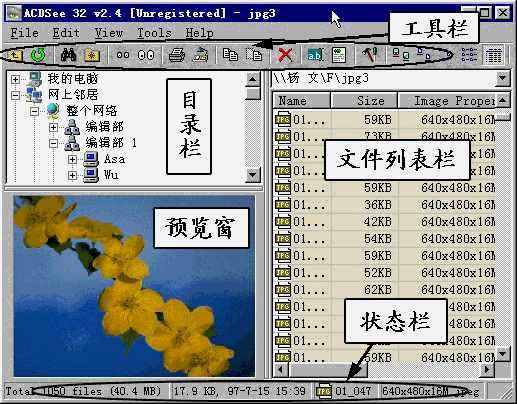 贝贝附注:这里介绍的是刚刚出笼的ACDSee32 2.4版,使用方法与先前的版本大同小异。2.4版的下载地址为http://www.acdsystems.com,下载文件大小为1.85MB。