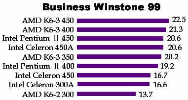 在对二级缓存速度依赖较大的Business Winstone99的测试中(