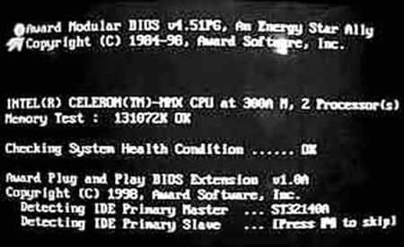检测到了两枚Celeron,好了,再把它们都超到450MHz,这样,一台服务器级主机就完工了,花的钱比一个PⅡ300还要便宜。