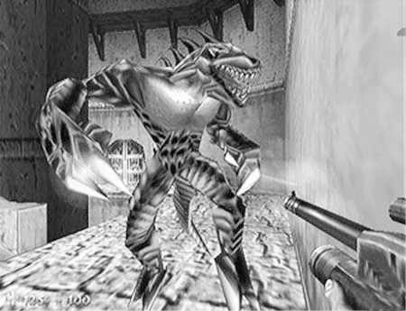 你是地球唯一的希望,然而没有人能帮助你,要靠自己来完成这项任务,人们只能企求神灵能指引并保护你了。因此,武器对你来说是至关重要的。在游戏中你可以捡到不同的武器和弹药,要记住:没有弹药就不会成功。该游戏提供了许多不同种类的武器,这些武器各具所长。辟如,当没有弹药的时候,魔爪(talon)是很好的武器,虽然它很原始,但威力却很大;火焰喷射器(flamethrower)可以催毁任何坚硬的物质,而且还可以用它来照明前方的路;战刀(war blade)是由钢铁做成的利刃,是用来肉搏的最好武器;弓箭(bow)是一种在远古时代就已有了的武器,在该游戏中,当你用它瞄准敌人的头部时,只需一箭就可以解决问题,然后你还可以把箭重新捡回来。游戏中总共提供了23种武器,你可以随时随地换武器(当然要在你已找到的武器范围内)。如果你想把敌人炸成碎片,可以选威力大的武器;如果你想和敌人单打独斗,也可以选用各种战刀。好好利用这些武器,你不仅可以消灭敌人(恐龙和其它动物)还可以释放无辜的儿童。
