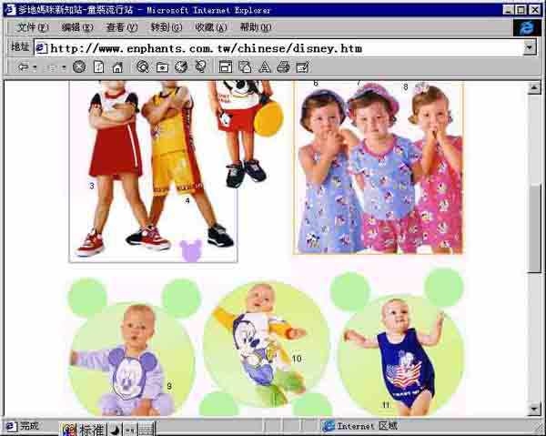 欢乐城童装(http://www.ihwa.com.tw/garment/)想通过穿着来表现孩子独特的个人气质吗?该站点报道儿童服饰的最新流行趋势,介绍世界知名品牌如加菲猫、美少女战士、凯文诗丹等精品童装。