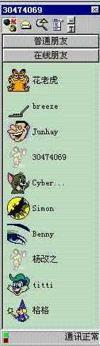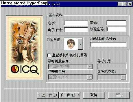),填好名字、密码等之后,然后开始填写详细资料栏,诸如国家、省份、邮编、地址等。在这一窗口中,你可以选择填写保密与否的“其他详细资料”栏,包括年龄、性别、职业、真实姓名等。如你选择了保密个人资料时,那么你的上述资料就不会让与你互传信息的网友了解到。紧接着是E-mail设置和网络设置,设置完后,单击“完成”按钮。当显示登录连接成功后,你就得到一个OICQ账户。你可以从“正在线上”的朋友中挑选若干位,将他们加入到你的通讯录中,在留言板中开始聊天。在下次使用OICQ时,你只需要根据已有的OICQ账号填写用户注册、E-mail设置和网络设置栏即可登录。更令人叫绝的是,它还有“贴身跟踪”功能:OICQ可以同传统的无线电寻呼网,GSM移动电话短信息相联。如果你的朋友登记了寻呼机或开通了GSM手机短信息,即使离线了,你的信息也可从茫茫人海中把他“揪”出来。一个如此小的寻呼软件,竟有如此强大的功能,真可谓是超级小霸王。
