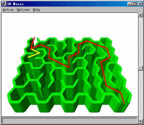 ),每个迷宫的出路只有一条,如果觉得迷宫太简单,可以调整分隔墙的高度和密度。这个游戏的控制是用键盘,方向键的控制是「Home」、「↑」、「PgUp」、「End」、「↓」、「PgDn」,重新开始是「Delete」,如果你和歪歪一样是个良牙(日本漫画 乱马1/2 中出名的迷路狂),那就按下菜单中的「Solve」,电脑会给你答案!
