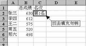 如图1所示,假如我们需要在B2:B13中输入数字序列“1、2、3、…、12”,只须在B2中输入“1”,选定B2:C2,双击填充句柄即可。如图2,假如我们需要在C2:C6中输入文本序列“第1名、第2名、…第5名”,只需在C2中输入“第1名”,选定C2单元格,双击填充句柄即可。