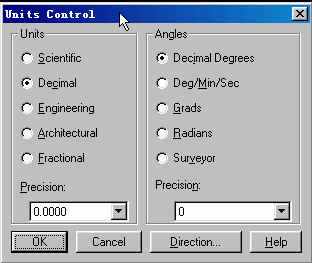 2.设置绘图单位和图限:选择Format/Units Control对话框,缺省的单位为Decimal(十进制)(见