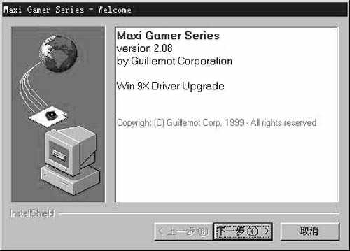 这次我使用的驱动程序是从Guillemot网站下载得到的,文件名为dgp2x-9x-208us.exe,是一个可执行文件。双击文件图标直接执行,会出现如