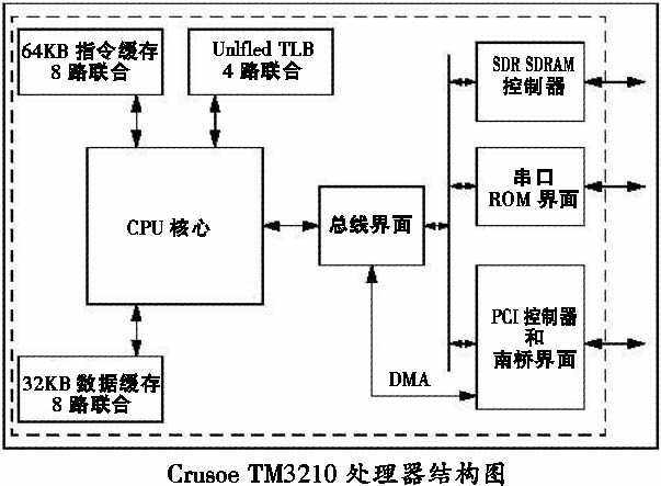 Crusoe TM3120。它是一块理想的便携式Internet设备的CPU,提供最高400MHz的主频运行速度。它整合了整数和浮点单元、指令和数据缓存、内存管理单元、多媒体指令以及其他传统处理器的性能。如SDR SDRAM内存控制器、PCI总线控制器和串口ROM界面控制器等,这些附加部分通常都在微处理器的逻辑部分。Crusoe TM3120处理器提供64KB 8路指令L1缓存和32KB 8路数据L1缓存。这个缓存结构可以保证内存提供最大限度带宽,以充分发挥微处理器执行应用程序的效能,满足了各种宽带Internet应用程序的需要,包括网络浏览器和E-mail应用程序以及巨大的视频数据流。(