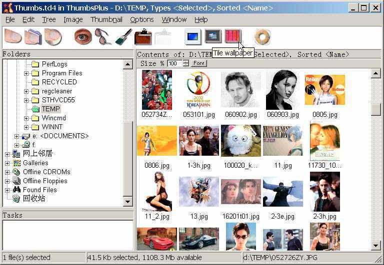 Thumbs Plus是一个被ZDNet授予五星的看图工具,针对图片文件,程序提供了极为丰富的功能,就程序的界面来讲,有点像CompuPic,就功能而言,与ACDSee不相上下。对于可支持的文件格式,就囊括了在Windows平台下常见的所有图片、音频、视频文件。