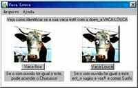 对了,有一件重要的事情忘了告诉大家。“疯牛病”听说过吧?就是三年前英国闹得沸沸扬扬的那起!好像吃了染病的牛肉会得什么病的。如何区分患病的疯牛?这可是个学术问题,非一两年可以学成的。知道农场主是怎么做的吗?告诉你,就是通过它的叫声来区分。我这里给大家提供了一个判断疯牛的工具(http://softhulu.nt.jsinfo.net/home/boylink/soft/smile/vacalouca.exe)。它给出了正常的牛与疯牛两种截然不同的叫声(左边那个两眼无神的是正常的,右边那个目光炯炯的是疯牛,要不是我告诉你,还真不容易判断呢),注意记住它们不同的叫声,右边的那个,它是疯的!!!切记:)