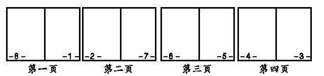 1所示。在Word内排版时有4个页面,对应有4个页码,叫实际页码。在4个实际页面上有8个逻辑页面,对应有8个页码,叫逻辑页码,分别是1与8、2与7、3与6、4与5排在同一实际页面上。下面是具体制作步骤: