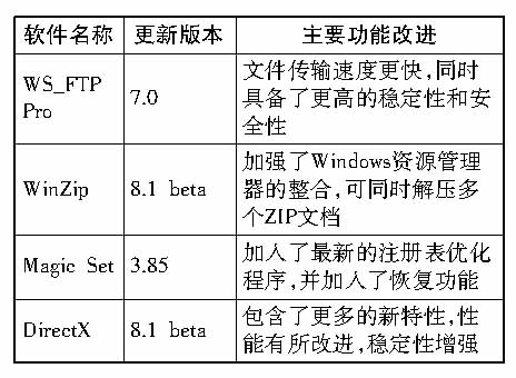 最后让我们来看看本周著名软件的更新情况(其中WinZip 8.1的详细介绍,见B5版文章)。(