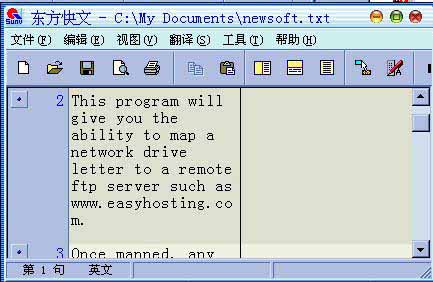 用“中”按钮汉化只能在屏幕上显示,不能够保存下来,如果要保存翻译结果,比如翻译一篇文章,这时你需要“东方快文”的帮助。