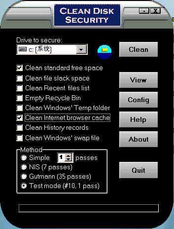 Clean Disk Securitx是一款共享软件,大小为626KB,可使用在Win95/98/NT下,感兴趣的朋友可以到http://www.inhua.com/CleanDiskSecuritx.htm去下载最新的4.8版。