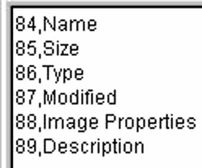 对应汉化如下“84,NAME”——“84,名称”,“85,SIZE”——“85,大小”,“86,TYPE”——“86,类型”。你可以照葫芦画瓢将“字符串”中的内容一一汉化。字符串的汉化类似菜单的汉化。
