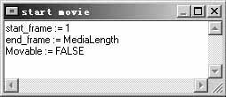 在这里我们建立两个自定义变量:start_frame和end_frame。start_frame是片头的起始帧,end_frame是片头的结束帧。附在数字电影图标上的两个赋值语句如