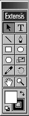 然后安装到Photoshop的plug-ins目录下(C:\Program Files\Adobe\Photoshop 6.0\Plug-Ins)。启动Photoshop以后我们发现在Filter菜单中就多了一个EXTENSIS子菜单,在这个子菜单中仅仅有一个命令——Photo Graphics俗话说:麻雀虽小,五脏具全。选择这个命令我们会发现弹出了一个独立的滤镜的界面。看上去和Photoshop差不多,左边有一个工具箱(