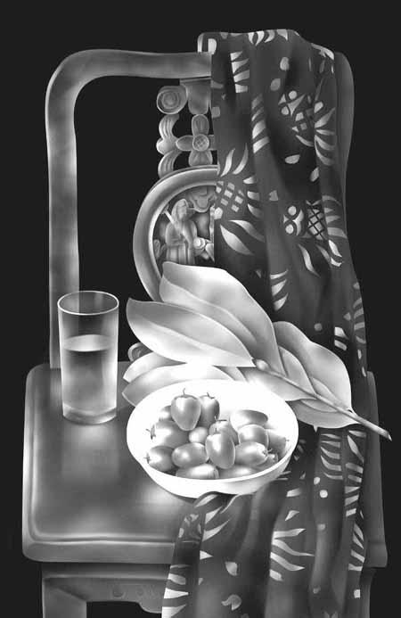 常说冰冻三尺非一日之寒,从薛宏的作品中我们看到他已经将Photoshop运用得非常熟练了。油画的凝重、工笔的细腻、水粉的洒脱,他都能很好地表现出来,还有素描的效果他也能表现得淋漓尽致(见Logo,也是他用Photshop画的哟)。再看最后这幅三维室内效果图,作品细节的处理非常细致,没有“假”的感觉,能达到如此效果,除了作者的Photoshop功底深厚外,绘画专业水平也是极高的。