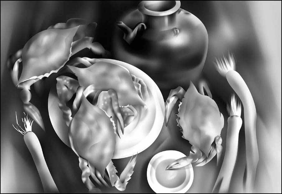 这幅作品以一根蜡烛和一块蛋糕巧妙体现了10年这个主题。作者的电脑图形制作水平也较高,左边的水纹用了3DMAX三维效果,思维比较大胆。