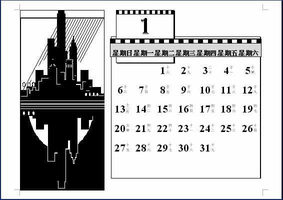 日历中的农历日期也可以被更换为其它的内容,例如将某一个特殊的日期注释为“生日/结婚3周年”等,爱人看了一定特别感动。更换的方法很简单,将光标定位于某一日期的右边,将原来的“初二”等文字清除,然后重新键入相应内容就可以了。不过字数不要太多,否则设置起来比较麻烦,而且还不美观。