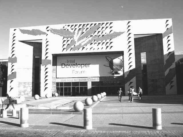 英特尔在会场准备了三个展馆:中心会场——圣荷西会议中心,用来进行普通演讲的圣荷西人民礼堂,第三个会场叫Fairmont Hotels and Resort,主要用来给其它厂商发布新产品的临时新闻中心。(