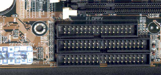 在我们安装双硬盘以前,我们先来了解一些基本常识吧。一般情况下,在你的主板上都会有两个可以让你安装硬盘或光驱的接口,我们称它为IDE接口(图1)(