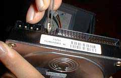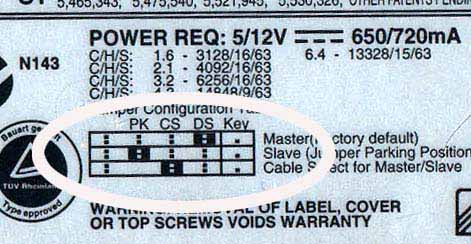 )。硬盘的跳线器通常有9针4组,其中一根叫“Key”,用于定位以便用户正确识别跳线位置。我们将原来的硬盘设置为从盘(图5)(