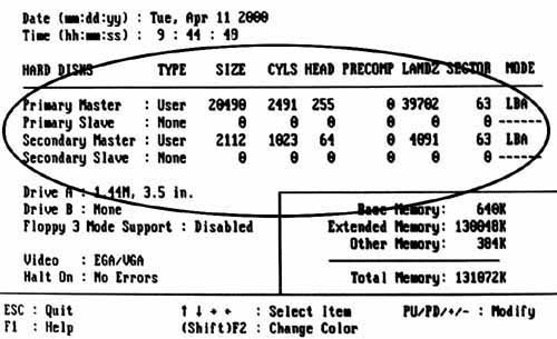 ),这时你只要选择“YES”就行了。不过别忘了识别你的从盘,在“IDE HDD AUTO DETECTION”选项里继续往下选就行了。最后将这个结果保存在你的CMOS中(图10)(