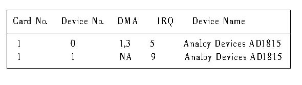 显示即插即用设备的卡号、设备号、直接内存存取号、中断号、设备名称等信息,其中的“NA”表示系统无法确定。