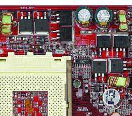 对于低电压、高电流的直流-直流转换器,在服务器用主板上早有成例可循。比如多相型的变换器,最常见的设计是四相,每相15A的话就能给60A的处理器提供电力。更高档的场合还可以采用专用IC甚至是专利保护下的特殊电路来保证电源转换的高效率和更优的特性曲线,采用以上三种的设计,成本会递次升高。台湾地区厂商中只有大厂会选择多相型变换器的思路,但是普通的二线厂商可能就会打点折扣,设计提供的电流刚好够标称支持的最高CPU使用。选用这样设计的产品,价格是下来了,但最起码对未来CPU的支持前景堪忧。