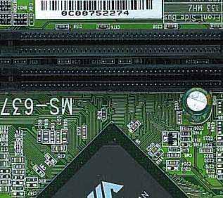 )一般以表面贴装(SMT)元件的形式出现,乖乖地趴在主板上。我们主要通过观察它们的贴装精度判断主板的生产工艺是否精良,好的贴装应该使它们准确地定位于板上的焊锡位,横平竖直,不得偏移或歪斜。要是满板都是东倒西歪的元件,就说明该主板厂使用的SMT机器(目前普遍是中速机和高速机)老化或是调校失准,甚至可能是小厂手工炮制的,这种工艺水平怎不令人忐忑不安。