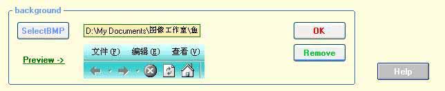 )。点击“SelectBMP”按钮选择一个BMP格式的图像文件作为IE的背景。