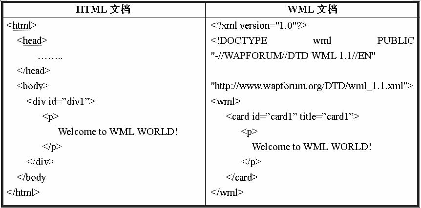 另外作为WML的一个标记,与HTML标记一样具有标记属性或标记内容。标记属性表示相关于该标记的一些特性设置如用来唯一表示标记的标识号id、表示提示信息的title、表示图片源地址的src等。由于WML是XML的一个应用分支,语法比HTML严格,它要求每个标记必须有对应的结束标记或结束符。如仅表示回车换行的空标记br在HTML中可以写成<br>或<br/>,但在WML必须采用加有结束符“/”的<br/>