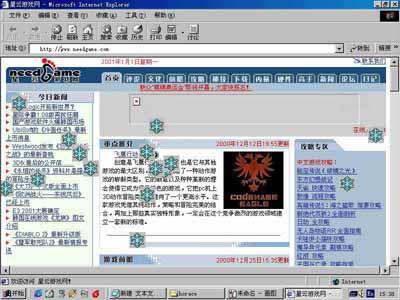 2),新建一个目录,先把图片拷进去。再点击IE查看下的源程序,查看原网页文件的源程序。很顺利地找到了“<SCRIPT language=JavaScript src=“星云游戏网.files/snow.js”></SCRIPT>”这么一串代码,这就告诉我们了,原来这是调用了“星云游戏网.files”子目录下的snow.js这个JavaScript程序,还等什么,赶快找到这个程序,把它拖到我们新建的目录中。至此,我们的大功也就基本告成了。
