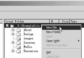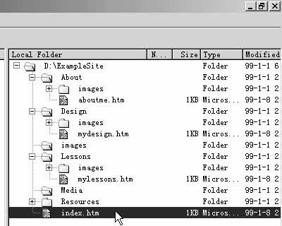 你也可以用这种方法快速创建新的文件夹。利用这种方法你可以很快了解你的工作量和目录结构,在后面添加文件之间的链接时,只须简单地选择这些文件即可。这有助于你的站点管理工作。