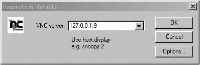 3.在被监控端设置好以后,就可以设置监控端了。在监控端可以不安装Win VNC而直接运行VNC viewer(为了方便,最好还是全部安装),点击菜单项后,屏幕上出现如