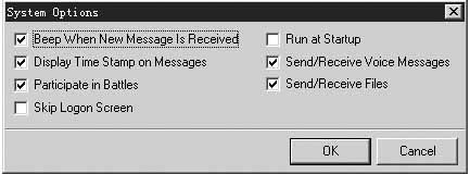 在图3中可对软件参数进行设置,如有新的信息到来时发出嘟嘟声(beep when new message is received);在信息前面显示时间标志(display time stamp on messages);允许发送,接受语音信息和允许发送和接受文件等功能。