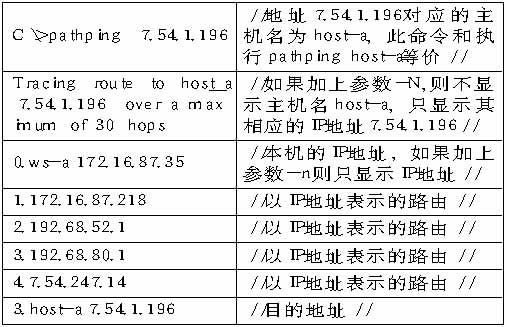 当Pathping运行时,首先显示路由信息,其路径与Tracert命令显示的结果相同。接着,Pathping命令显示一条大约需要运行1.5分钟的忙消息(具体的时间取决于运行中的跃点数),在这段时间内,Pathping将从以前列出的所有路由器和路由器之间的链接收集信息并进行统计。在此期间结束时,显示测试结果。