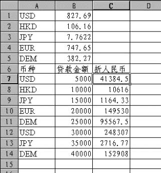 当然,我们可以将汇率清单单独存放在一个工作表中,那样我们的表格将更加美观。我们还可以将存放汇率的数据表增加多个空行,例如增加为A1:B7,将公式中的$A$1:$B$5改为$A$1:$B$7。日后如果增加了新的币种,我们就可以随时在数据表中增加汇率,及时扩充数据。这点充分体现了vlookup函数大容量的特性。