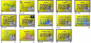 一个课件制作、设置完成后,就可以在PowerPoint中正式启动幻灯片放映演示了。在PowerPoint中启动幻灯片放映有四种方法,由于篇幅有限,在此仅针对已制作的课件介绍其中一种放映方式。执行“幻灯片放映”菜单中的“幻灯片放映”命令,演示文稿就从第一张幻灯片开始放映,以后单击鼠标或任意键,就可以把整个演示文稿放映完,但这里放映到第二张幻灯片时,我们可以按照设置的链接方式进行放映,可在“内容提要”和相应内容的幻灯片之间反复切换,这样更符合上课的实际要求。