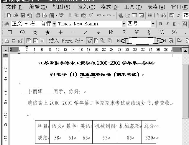 好了,现在你就可以将这些成绩通知书打印出来或者合并到一个新的文档中,效果不错吧?下一学期,你还可以继续利用“邮件合并功能”来制作成绩通知书,只要在Excel中修改学生的科目和成绩,然后重新执行一次“合并”操作即可对数据进行刷新。假如科目未变,而只是成绩发生变化,只要修改好Excel数据源中的数据,Word进行合并操作时会自动刷新,一点也不用你手工修改。