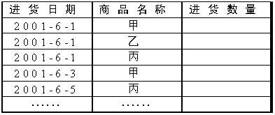 4.选择“进货”工作表,输入标题(进货日期、商品名称、进货数量)和相应各项数据。