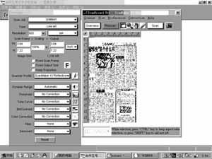 接下来Settings窗口中,设置好扫描参数,然后单击“Overview”,ScanWizard Pro就会快速运行预览图像功能,当预览的图像出现时,你就可以调整预览图的浮动点边缘,来决定实际扫描的最后大小。最后就可以单击“Scan”按钮,扫描结束后,图像就会传到Photoshop,你就可以作进一步的编辑或保存了。(如图4)(