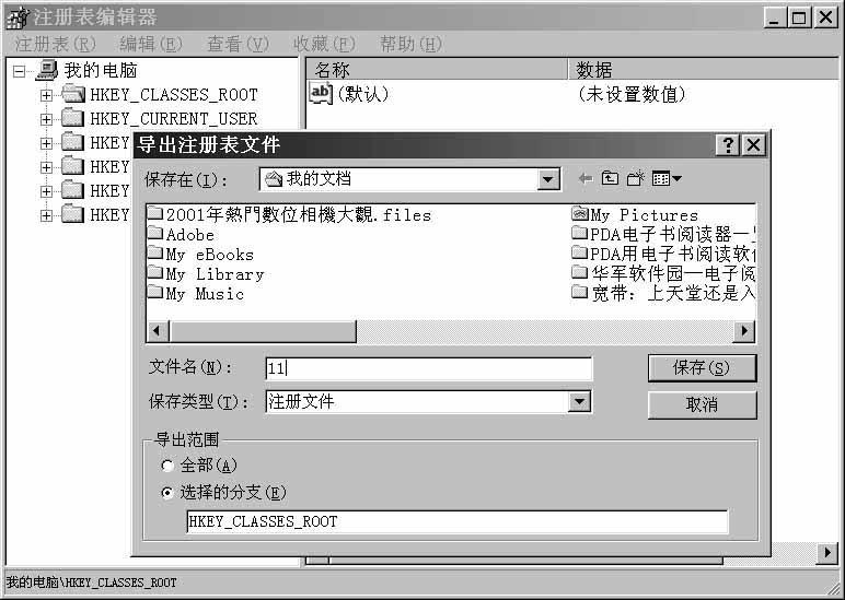 ),键入欲备份注册表的文件名及其保存位置,再按“保存”按钮即可。需恢复注册表时,用同样的方法打开注册表编辑器,打开“注册表”下拉菜单后点击“引入注册表文件……”项,在出现的对话框中选中所需恢复的备份文件,再按“打开”按钮即可将该注表备份恢复回Windows系统了。