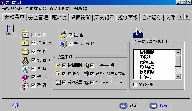 与“注册之剑”类似的软件很多,但该软件最大的特点就是对系统的安全保护关注比较多,下面就将其主要内容及使用作一简要说明: