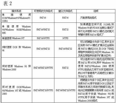 上述分区格式组合并未固定,你可根据自己的实际情况适当加以调整。就家庭用户而言,建议选择Windows 98SE、Windows ME、Windows 2000或WIN XP操作系统,为保证有最好的兼容性,文件系统建议采用FAT32。